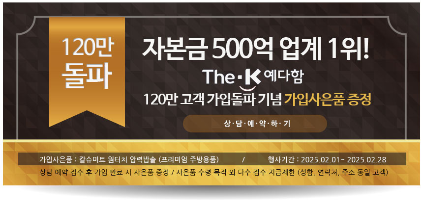 - ์ธ์ ํํ: ํ๊ตญ ๊ธฐ์ค ์ฐ 100๋ง ์ ๋ณดํ๋ฃ ์๋๊ณต์ ๊ฐ๋ฅ.